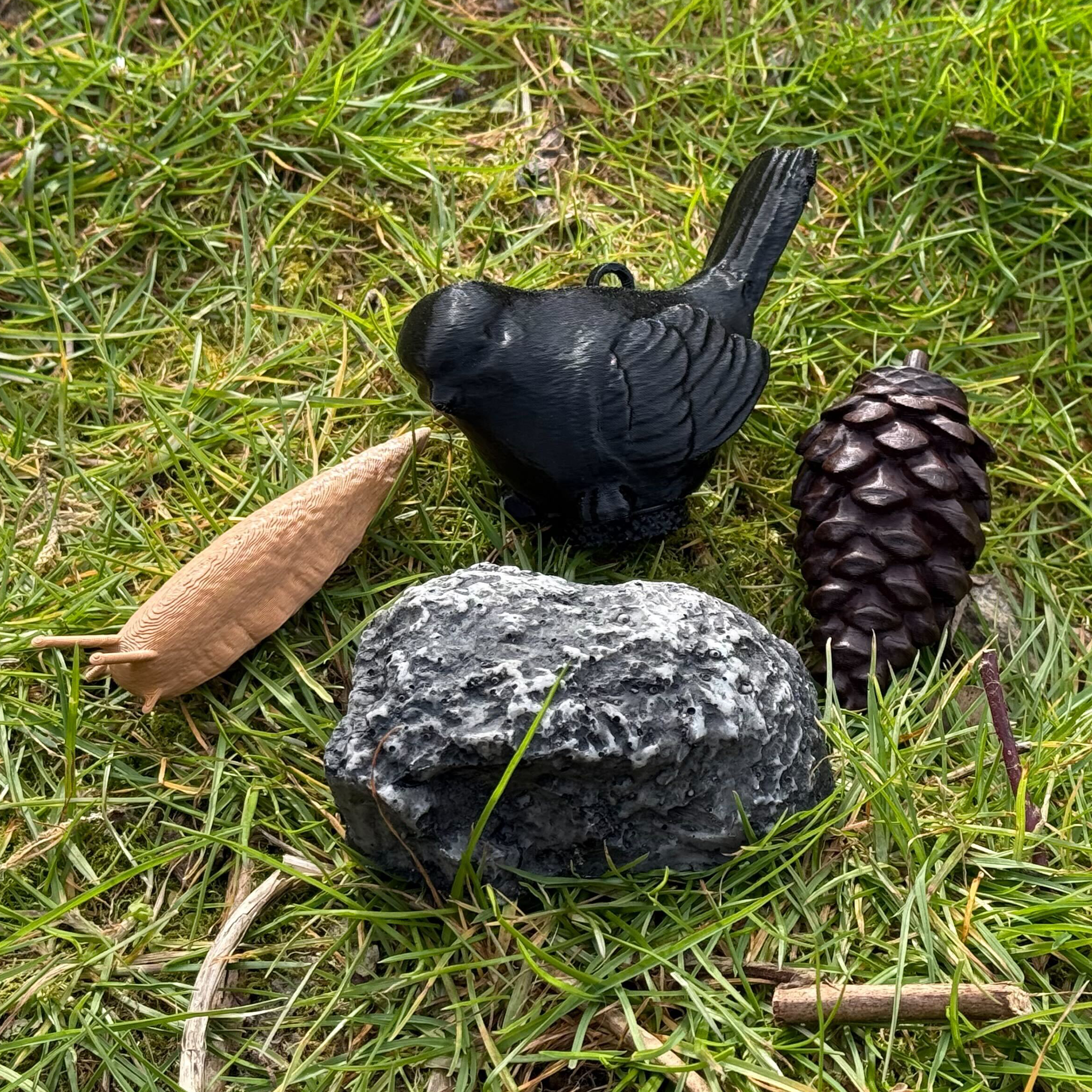 - 3D printed bird geocache (approximately 4 inches x 2.5 inches)