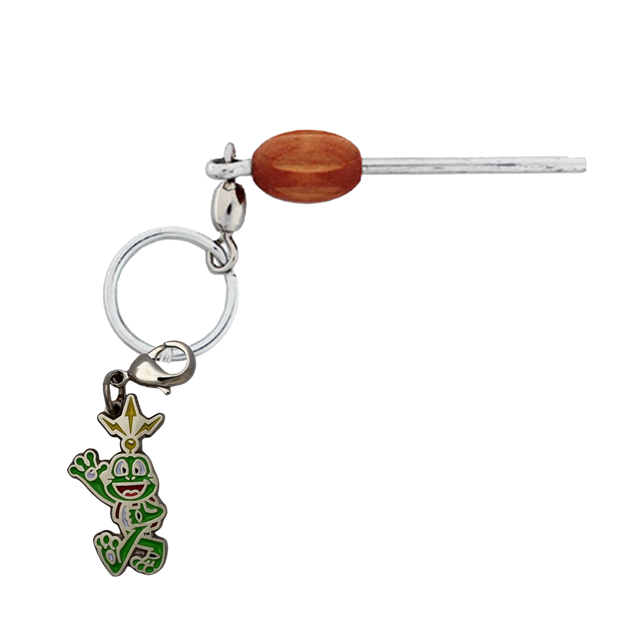 This is a great solution for tiny hides and tinier log strips. Made with cotter pins and a colorful bead, they also feature a split ring so that you can use them on your keychain.
